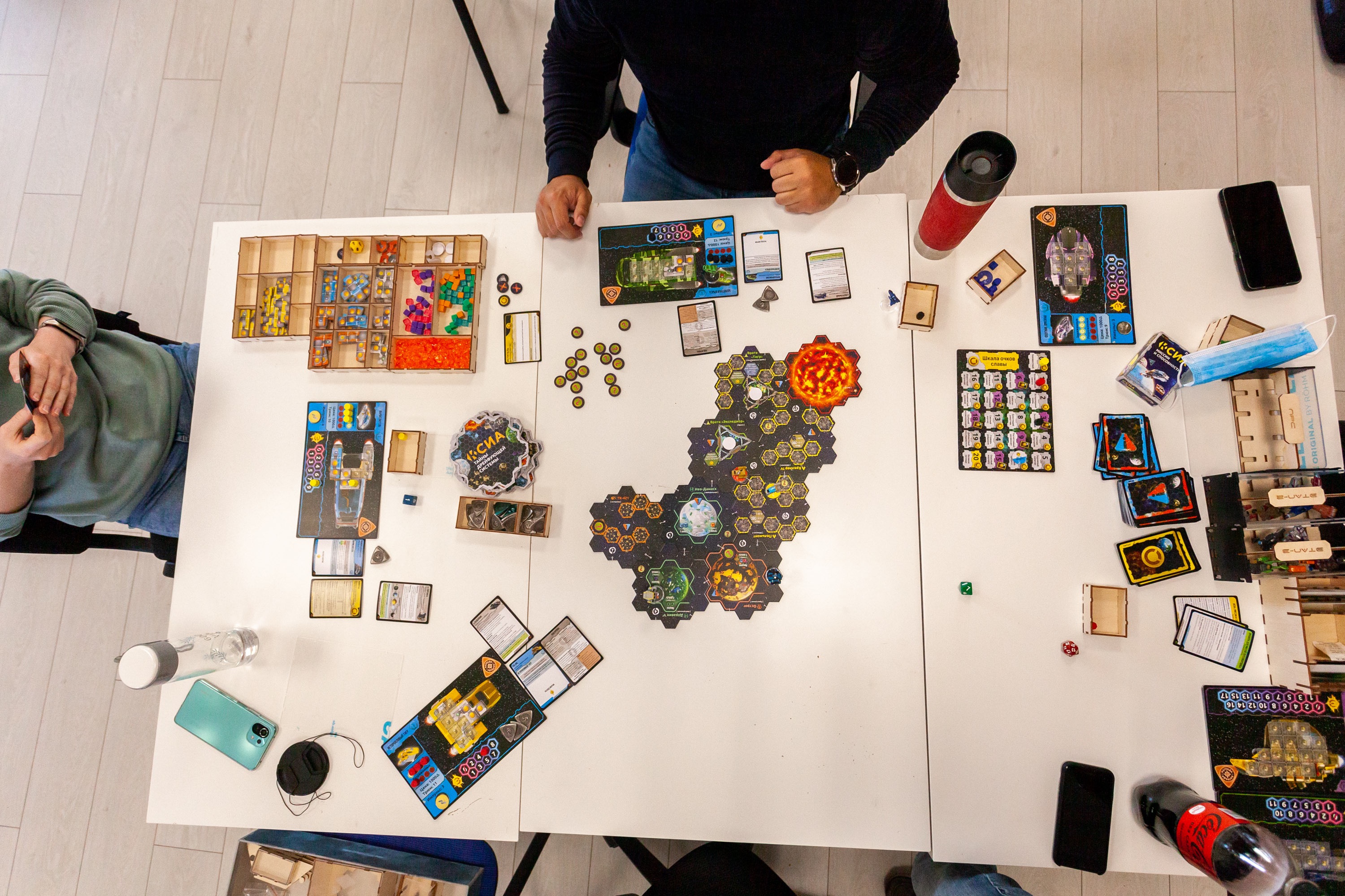 Слышал, что в игре большой даунтайм, но этого не почуствовал: за ходами других игроков следить было интересно, длились они не прям чтобы долго. О чем думать долгодумающим игрокам мне тоже не очень понятно — хоть возможных действий и куча, в большинстве случаев у тебя есть цель на ближайших раунда два на протяжении всей игры. Можно, конечно, сидеть и что-то просчитывать, но гораздо проще идти и делать то, что быстрее принесет победные очки.