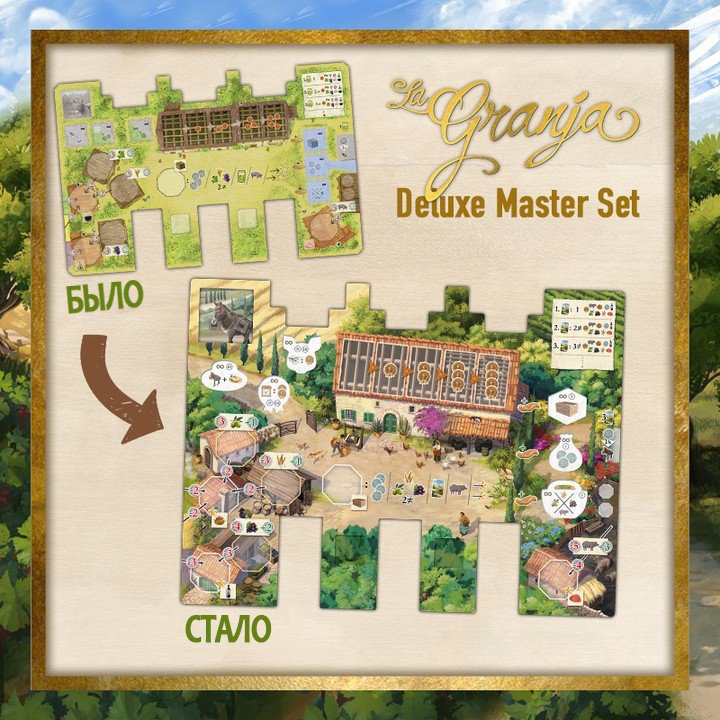 Ла-Гранха занимает плотное место в нашей коллекции. Это семейное классическое евро с удачным сплавом механик. В следующем году выходит Делюкс версия с новой графикой и кучей дополнений. Каждый доп разрабатывает какой-то именитый геймдизайнер. Не знаю, возьмет ли кто-то на локализацию, но если нет — планирую взять англоязычный сет.