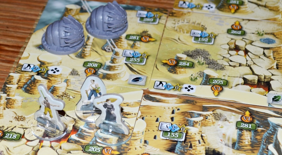 В третьем режиме добавляются жетоны племени. Члены племени приносят победные очки за всякое разное, получается этакий поинт салат, когда тебе нужно думать о том, чтобы правильно разместить тайлы не только чтобы они сами по себе приносили много очков, но и чтобы туда еще стали нормально жители племени. При этом постоянно нужно следить еще за тем, что соперник собирает, потому как иногда выгоднее увести какого-то жителя с рынка, нужного сопернику, чем взять кого-то нужно для себя.