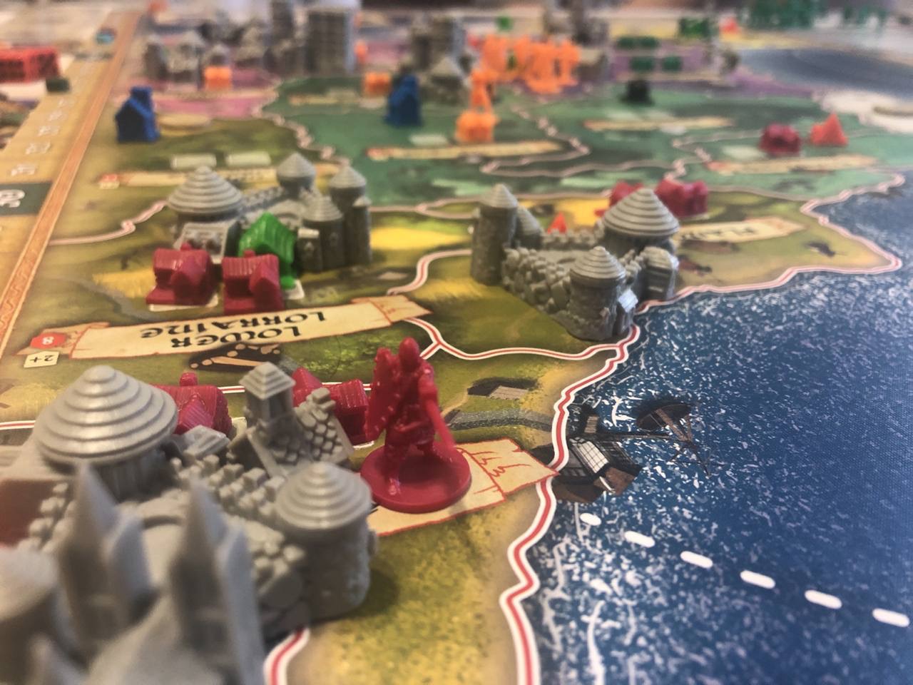 Сто лет пытался добраться до нее, ведь она в топ-100 БГГ. И вот ее внезапно купил Тарас и мы в нее сыграли на четверых. Игра от того же автора (и в том же оформлении), что и серия Западных королевств. Игра с супер простым и динамичным геймплеем. В игре мы либо готовимся к битвам по принципу Поставил мипла — выполнил действие — забрал другого мипла и выполнил его действие. Либо атакуем всякие крепости и заставы, за это платим ресурсы, суммируем силу на картах своих соратников и при необходимости кидаем кубы. За победу получаем ресурсы, сеты из которых нужны для выполнения заказов. Все достаточно тематично, но несколько простовато. По сути в игре более внятно механичекси реализовано тоже самое, что я видел в Чемпионах мидгарда. Рандом в колоде соратников показался таким себе, кому-то сильные ребята, кому-то слабачье. Ну и показалось, что лучше идти атаковать чем раньше, тем лучше, чтобы получить хоть парочку очков, потому как пока будешь готовиться к большому количеству ПО, локации могут-то и закончиться.