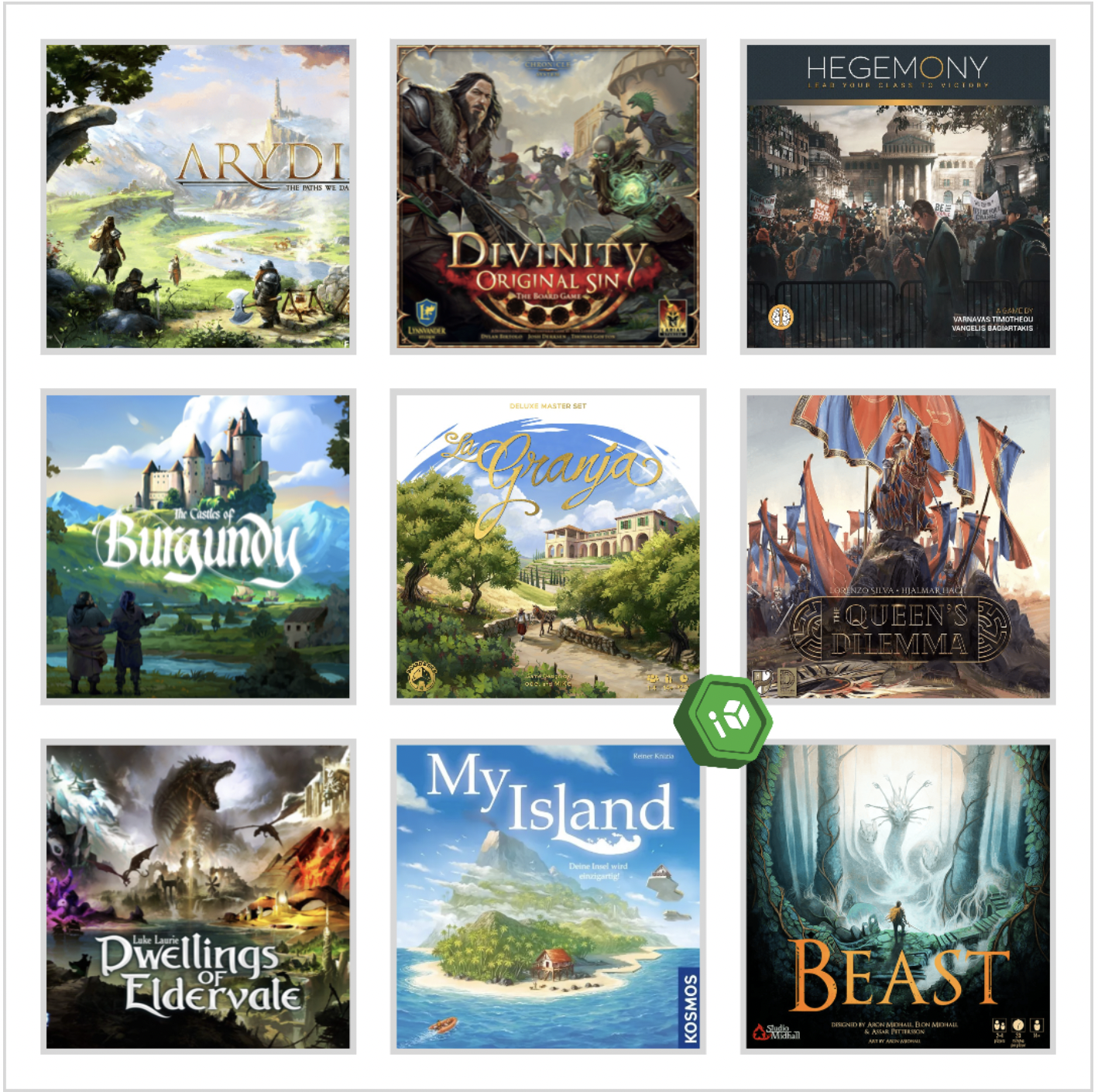 Замки Бургундии Делюкс — все еще не знаю вписываться ли в сбор на Gamefound, еще думаю. Может нет, а может да. А может в рознице будем ловить. Других версий замков Бургундии в коллекции нет, но игра очень клевая.