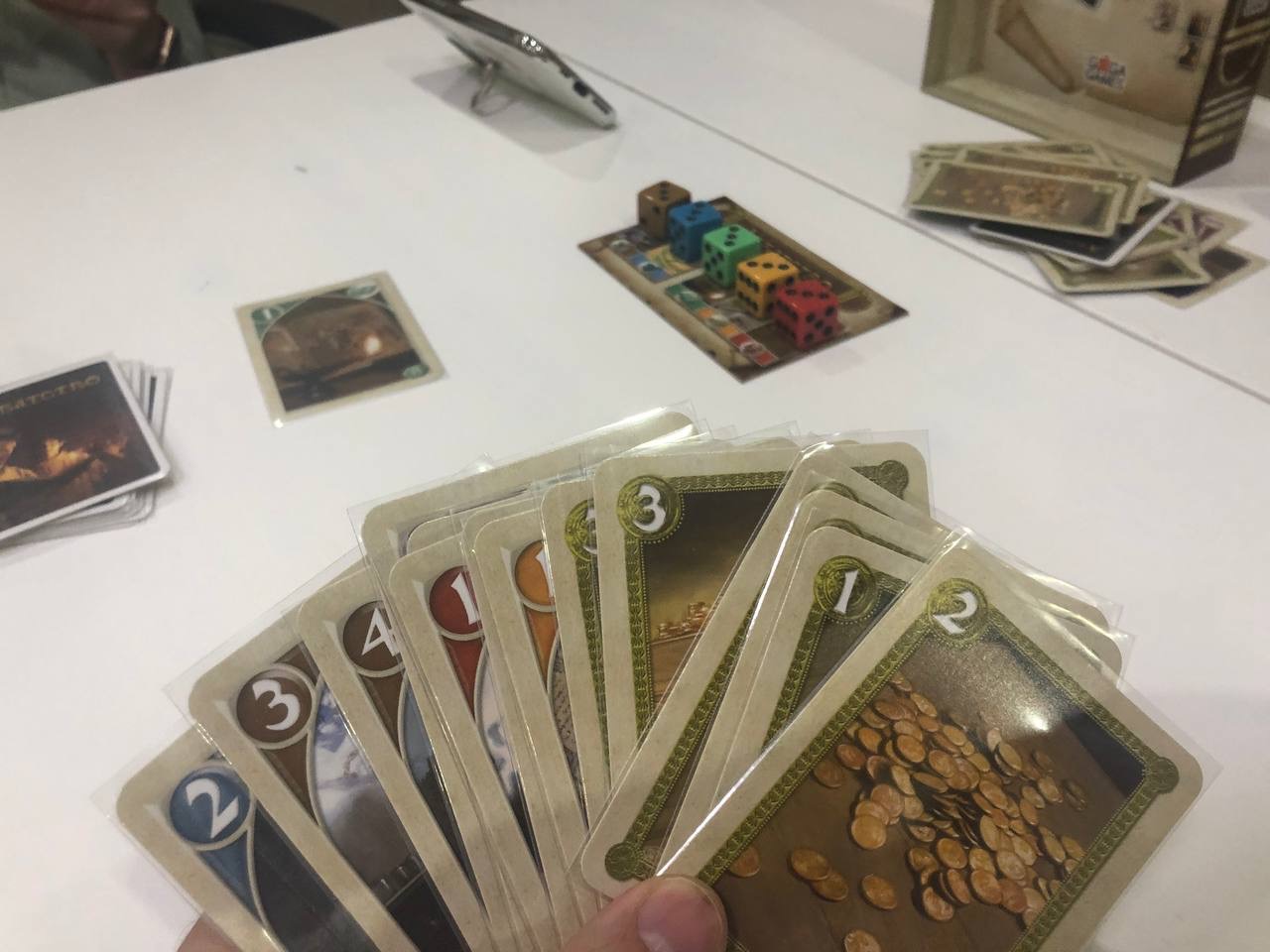 Выиграл на др клуба за победу в турнире по перевороту. Играли несколько раз разными составами. В игре у нас есть 5 мастей, за мажорити в конце по каждой получаем победные очки. Изначально это по 3 ПО за каждую, но можно подкручивать вверх и вниз. Спойлер: во всех наших партиях все равно кубы остались на тройках. Играется динамично, но не сказал бы, чтобы прям интересно. На карты может сильно не везти, как ты ни планируй, можешь остаться и без денег и без мажорити по цветам. Короче, норм, но не так чтобы мы хотели в нее играть еще и еще. Не хватило глубины. Отправляется на барахолку.