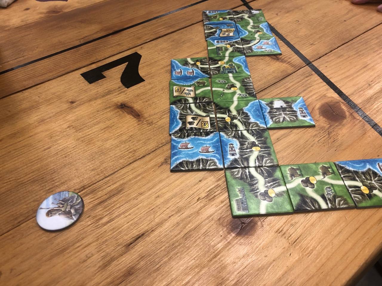 Играли на троих с допом Друиды. Игра клевая, в ней есть куча всего, каждый элемент кого-нибудь за зацепит. Составление своего королевства из тайлов — есть, неагрессивный аукцион — есть, разные цели в партиях — есть, даже копание в мешочке в надежде вытянуть нужный тайл есть. Если бы у игры еще были металлические монеты и чуть более симпатичное оформление, вообще бы цены ей не было. Но играется она и так очень неплохо, очень приятно. Я грешил и играл в Остров Скай в перерывах между ходами в Ксии, но отряд не особо замечал потери бойца, так что смог в обе игры получить удовольствие сыграть. Доп друиды добавляет дополнительную возможность за денюжку покупать еще тайлы, большинство из них дает разные доп способы подсчета победных очков. Отличный фикс избытка денежных средств. Эх, сюда бы арт как в каком-нибудь лоскутном королевстве.