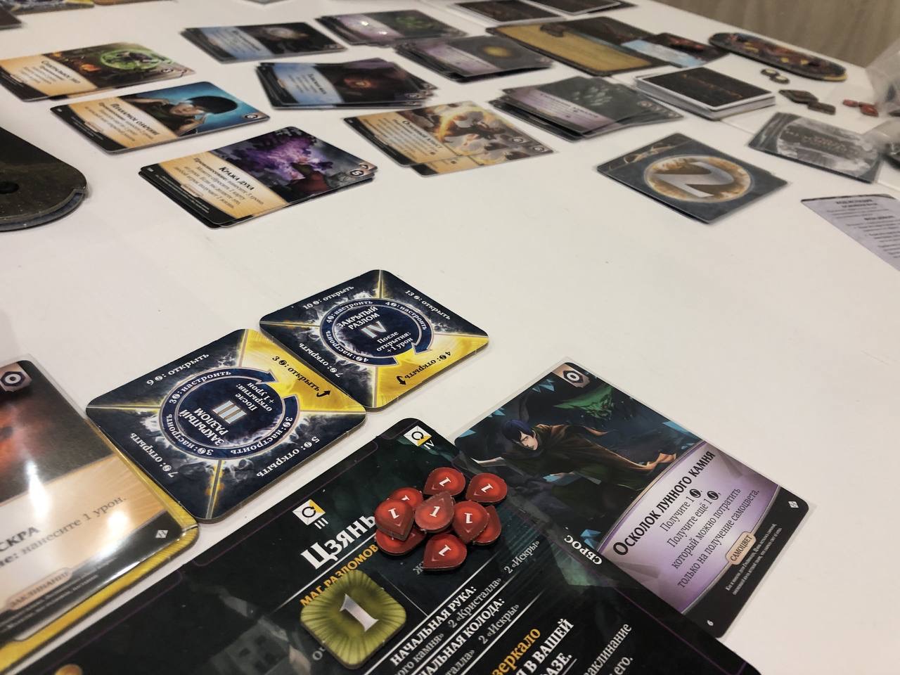 Опробовали предзаказанное. Редко что-то заказываю или покупаю, не уточнив перед этим у Ани будет ли она в такое со мной играть, а тут повелся на цену и сделал как раз так. Когда игра приехала, Аня сказала что арт стремный и в такое играть не хочет, но неделя дипломатии и вот, коробка разложена. По сути перед нами реиграбельная карточная головоломка. Ограниченный рынок, примерно предсказуемое поведение босса, и попытка его одолеть. Кто-то называет такой жанр «развлекай себя сам» и что-то в этом есть. Кооперативность не особо чувствовалась, мне приходилось ходить и за себя и за босса, но тем не менее геймплей был динамичным. Понравилась фишки с переворачиванием колоды, а также с колодой порядка хода. А вот не понравился ограниченный рынок, который прокачку в партии относительно предсказуемой, а также арт. Арт прям отвратительный. Тем не менее за счет разных вариантов рынка и парочки боссов реиграбельность норм и у базы, 1-2 партии я бы еще сыграл, а вот после отправил бы коробку на барахолку, так как минусы перевешивают плюсы. А ограниченный рынок не дает делать какие-то глубокие или нестандартные решения. И так примерно понятно что ты будешь делать, чтобы победить. Это вам не остров духов, в котором нужно изголяться, игра более прямая — накупил урона/хилки — нанес урона/полечил. В легаси-формате я бы на конец вечности посмотрел, но если бы у нее все-таки был поинтереснее лор и арт. Тем не менее, изучу доступные вариантики. Я люблю фэнтези, но тут прям оно какое-то шаблонное-прешаблонное получилось. Понимаю, почему игра может многим нравится, но у нас она вряд ли надолго приживется в коллекции. Не скажу, что разочарован, но ожидал несколько большего.
