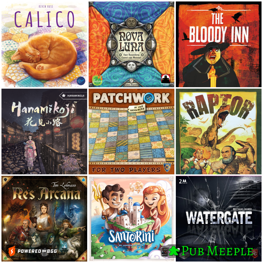 Так, ну этот список как по мне более спорный. С Пэчворком понятно — классика. Котики, Санторини и Путь лепестка мне не сильно зашли. В Нова Луне слишком сильно роляет кто первый игрок, но мы вроде как придумали на эту тему хоумрул. Красная Таверна прикольная, Уотергейт клевый. Рес арканное шило-на-мыло в формате гонки не особо люблю. А вот Раптор единственная игра из всего списка, в которую я пока не играл. Надо исправлять.