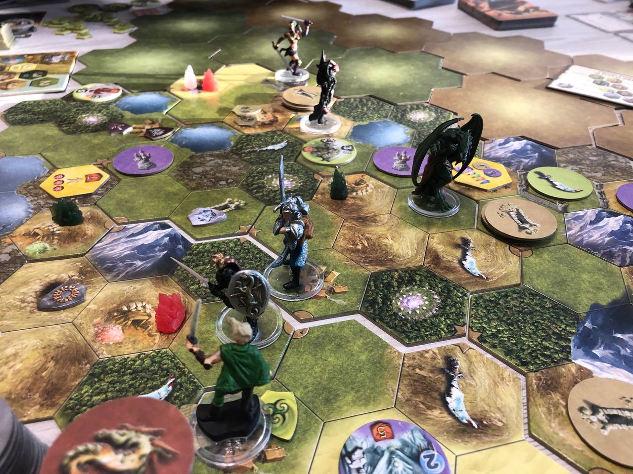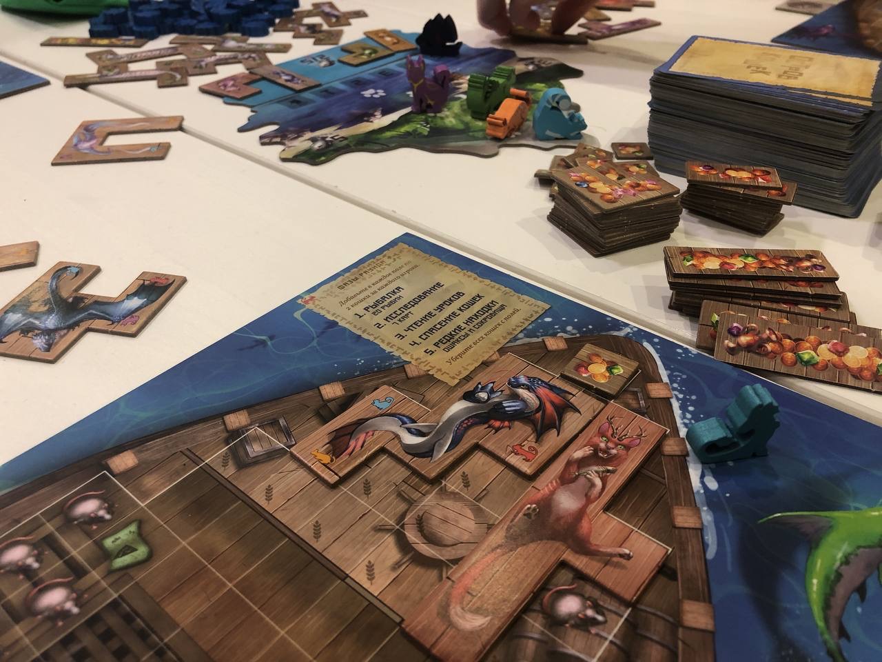 Партии длились меньше часа. Например в последнюю сессию мы за 1,5 часа успели сыграть три финальные партии. На двоих глобально играется ок, единственное что на 4х скорее всего вы увидите еще больше контента, так как эпохи не будут открываться так быстро. Например, мы так и не встретили диких кабанов, не нашли чудо-дерево и не встретили гуляющую труппу артистов, но и без этого разнообразия нам в принципе хватало, да и даунтайма не было.