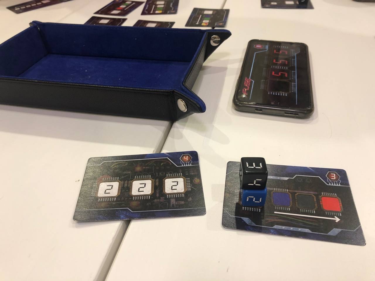 Вы любите игры в реал-тайме? А если я скажу, что это кооператив в котором надо швырять кубы? Игра длится ровно 10 минут, вы выбираете сложность и получаете карты заданий (они общие, лежат в центре стола колодой). Далее когда запускается таймер вы швыряете кубы из мешка по количеству игроков. Каждый игрок должен поставить хотя бы 1 куб на свою карту заданий. Если не может, куб перебрасывается и вы должны чет скинуть со своих заданий.