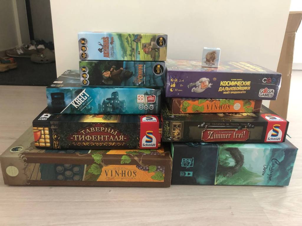 Вернемся к настолкам. Собственно, каждый раз возвращаясь из Минска мы привозим немного своих игр в Вильнюс, в этот раз тоже партия получилась годная. Привезли Таверны, так как купили к ним доп, аналогично с Виньос и Little Town. Дополнительно приобрел Квест—коллекцию новую, ну и миньку Мамонта для Вечной Зимы. А товарищ заказывал из Минска доп к Космическим дальнобойщикам, так что и его опробуем.