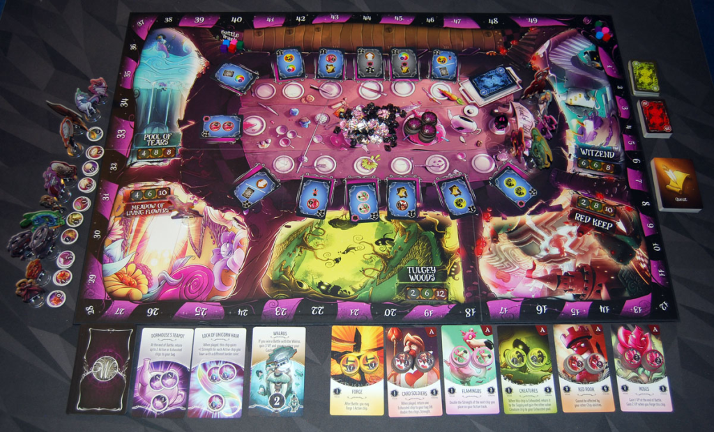 Wonderlands War. В итоге из всех ареаконтролей до финального списка отложенных покупок добралась именно эта игра. В первую очередь, потому что Аня от нее осталась в большом восторге, ее любимых Шарлатоанов объединили с крутым оформлением и неплохими доп механиками. Мне игра выше среднего, но по причинам выше, для подобного списка подходит. Само собой, в будущем нам будет с кем в нее играть, и возьмем мы сразу со всеми дополнениями. Одно вот уже анонсировано.