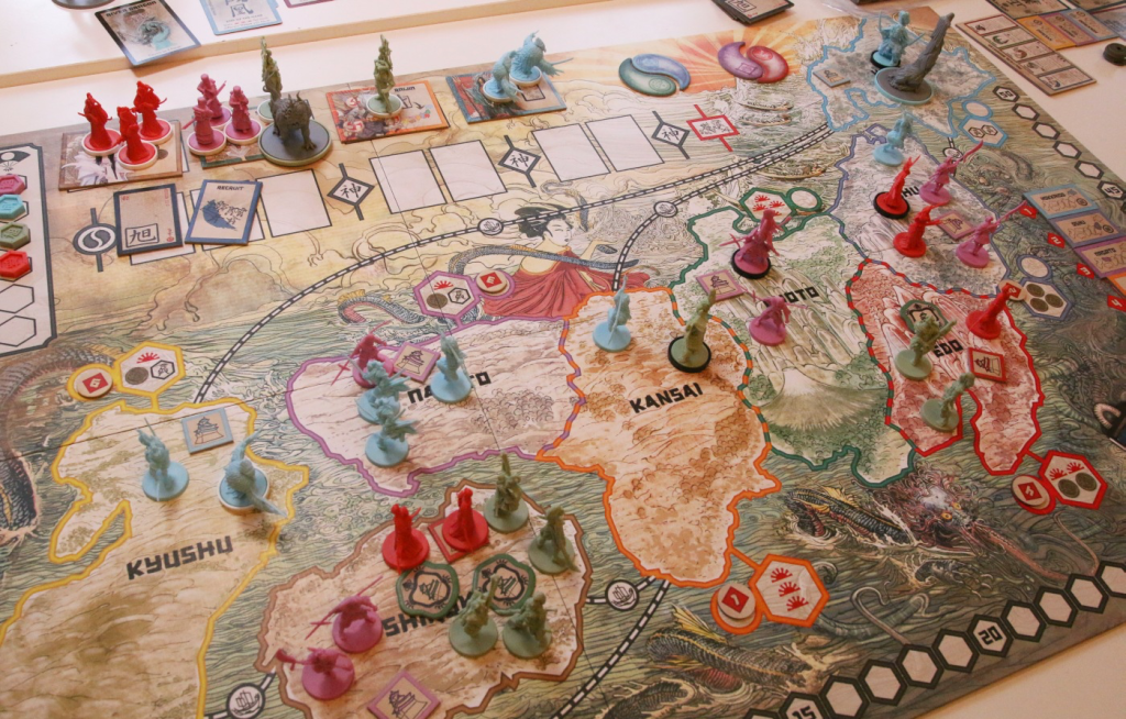 Восходящее солнце. Представлял я себе свою коллекцию, когда все хорошо. И думал, ну должен же быть там хоть какой-нибудь ареаконтроль (игра престолов и тираны подземья не в счет). Перебирал все возможные опции, Кровь и Ярость не нравится Ане, Киклады не всем заходят из-за аукциона, Кемет египетской мифологией. А Ктулху слишком монструозны. Из основных фаворитов оставалось Солнце, но если быть честным перед собой, то собрать пати на Солнце реально не просто, мало кто соглашается играть в него второй раз, игра мне все еще нравится, но вот даже не знаю сыграю ли сам хоть раз в этом году, потому как при прочих равных люди легче садятся за другие контроли территорий. В этой же слишком высокие цены ошибок и слишком сложные решения порой приходится принимать.