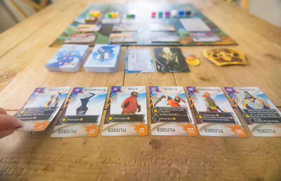 — Механика действий на корабле. Действия дают не сильно большой бонус, в большинстве случаев ты получаешь фишки приказов и карточку + еще какую-то мелочь. Мне кажется, если заменить это на вытягивание рандомного бонуса и не давать тут какой-то доп выбор игроку, было бы лучше.