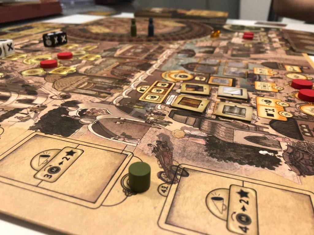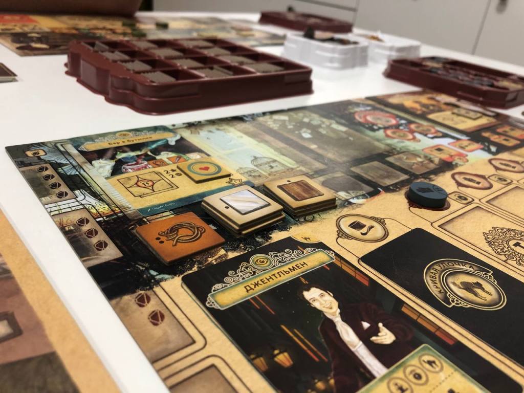 Друг купил делюкс коробку с допами, но мы первую партию играли вдвоем в голую базу с модулями из Кривой улочки (без кривой улочки вообще нет смысла играть). И, если говорить кратко, то мне понравилось, хотя я и проиграл с треском. Мне понравилась механика выбора действий на раунд: что-то вроде выбора карт для персонажей в ЗВ Восстании, только упрощенное. Также понравилось, как интересно ломают игру действия, которые можно получить в кривой улочке, мне было интересно понахватать там действий и пытаться играть от них.