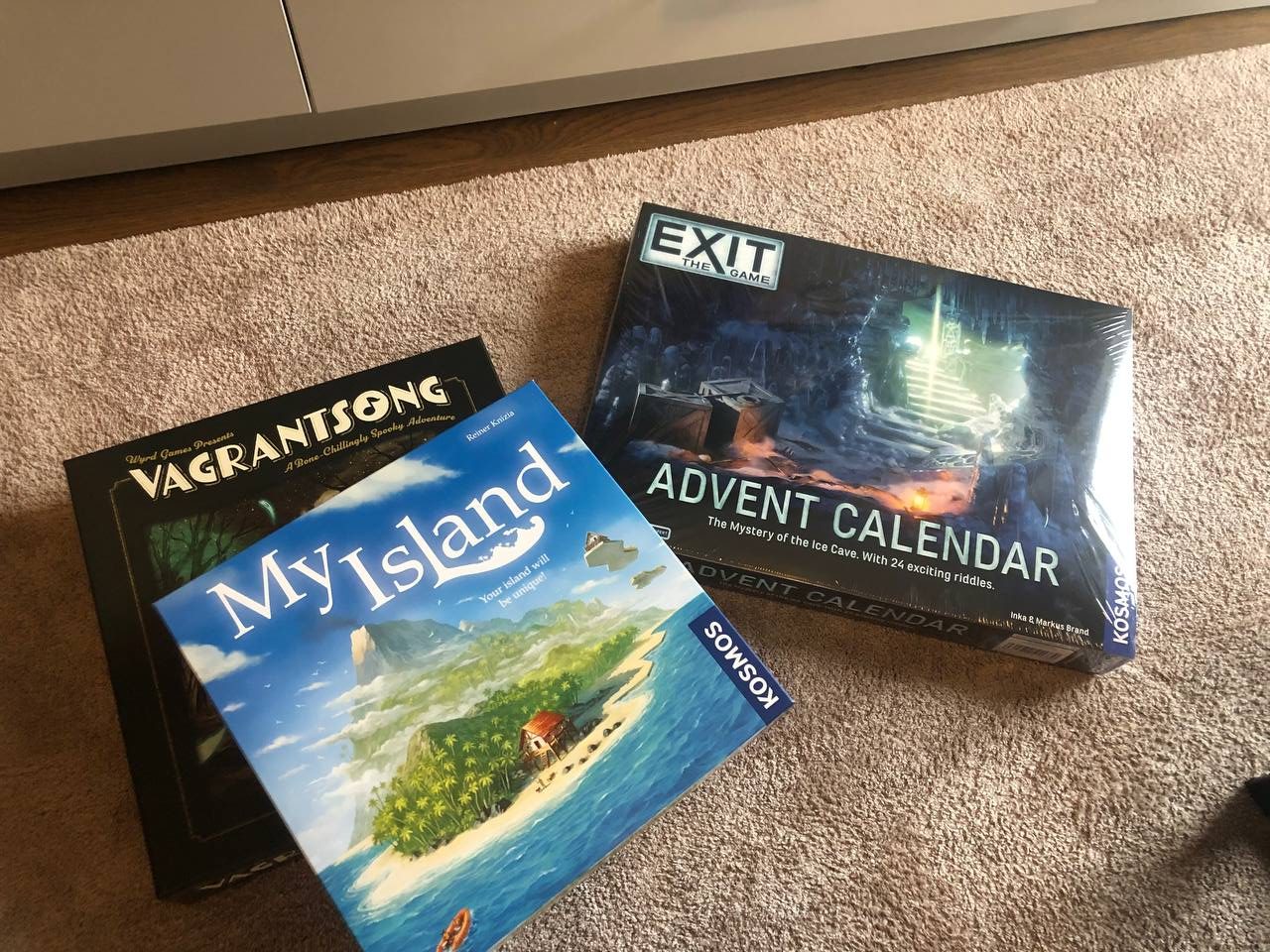 Отпраздновали пятилетие клуба в первый раз: небольшой игротекой в Вильнюсе (игры тут уже описаны в подборке) и чередой покупок. Так, купили Вагрантсонг (Ане понравилась рисовка), предзаказали Саграду Легаси, подтвердили предзаказ на доп к Арк Нове. А также купили My Island и Exit в формате Advent календаря. Вишлист почти иссяк, буквально пара игр в нем осталась.