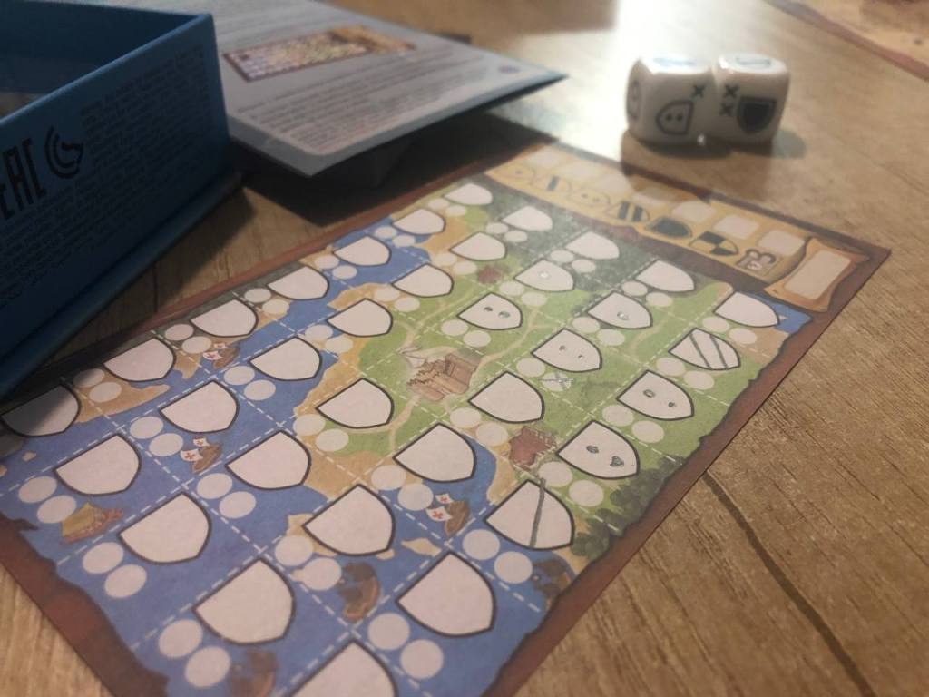В перерывах между двумя партиями в Бэнг, мы попробовали дуэльное лоскутное королевство, который рол энд райт. Минимум компонентов, максимум лоскутов. Конечно, игра работает хуже, чем базовая, да и ничего нового партии приносить не будут, просто пазл на размещение выпавших значений кубиков. Не могу сказать, что понравилось, но если бы познакомился с ней 5 лет назад, наверное, впечатления были бы получше. А так, Роланов Райтов хороших сейчас на рынке хватает, а этот на их фоне смотрится очень бедно и скучно.