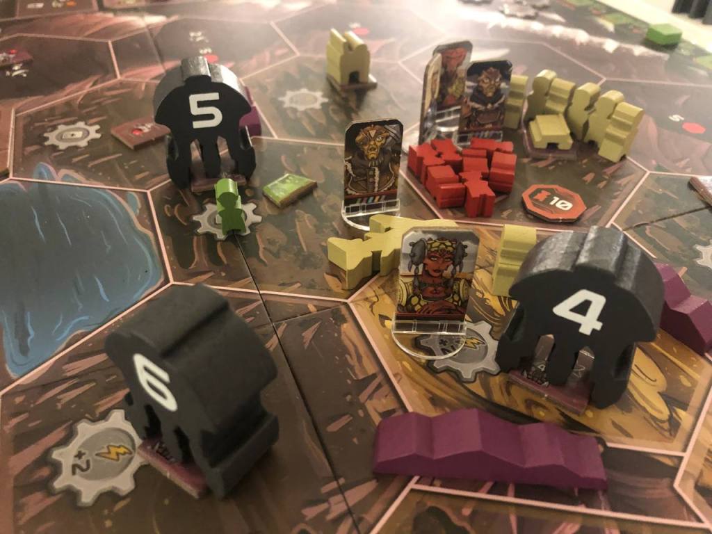 Мне почти удалось в один ход закончить партию и контролировать три оставшихся монолита, но дурацкий нюанс из правил все поломал. В следующий раз буду этот нюанс знать и так глупо победу не отдам. Также, увидев все шесть фракций в бою, мне кажется, что ребята, за которых я прошлый раз играл, которым надо просто поднять все треки ресерча до максимума самые простые с точки зрения геймплея, не берусь пока утверждать, но думаю, что за них побеждать легче (и быстрее) всего. Однозначно хочу поиграть еще, это для меня пока один из лучших ареаконтролей (но как минимум про один, который нравится еще больше будет ниже).