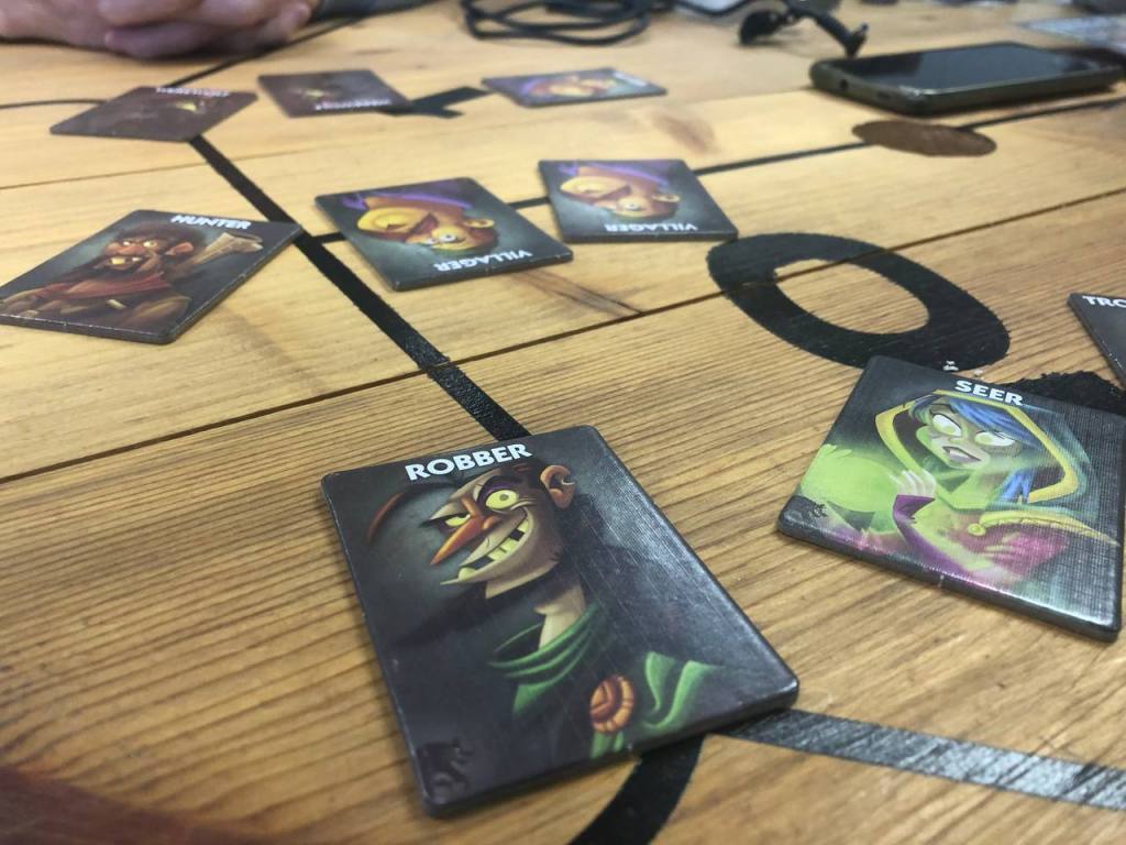 На следующий день после недоигранных Циркадиансов, мы в Минск поехали. А как оклемались, добрались до игротеки, где целых три игры смогли опробовать. Начали с мафиеподобного Вервольфа, который работает странно по крайней мере на наш состав (играли впятером). Это мафия на одну ночь, где ты смотришь перед ночью роль, а за ночь другие персонажи вполне могли твою роль уже поменять. И вот ты просыпаешься и тебе надо не просто понять, за кого ты теперь, но еще и восстановить цепочку ночных манипуляций, чтобы понять кто тут мафия. Мы сыграли два раза, в первый раз мафии не было ни одного (а тут и такое возможно), но мы не верили, что все добренькие и кильнули самого подозрительного (кстати раньше первым всегда киляли меня, поэтому в клубе мы и перестали играть в мафиеподобные игры, хорошо, что сейчас не раньше). Так мы и проиграли коробке. Во второй партии уже дедукция сработала получше, просто каждый признался, кто что сделал ночью, мы все друг другу поверили и правильно вычислили мафию. Игра странная, но на любителей может, наверное работать. Я все-таки считаю, что этот жанр очень не для всех, мне он норм заходит, но сложно под него собрать компанию. Все-таки Авалон, Blood on ClockTower или Атаку Кракена я бы попробовал для приличия, но кажется, что социальная дедукция — не то, за что я полюбил настольные игры.