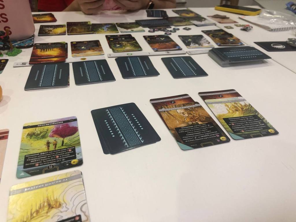 Еще перед поездкой успел разобраться в невышедшей новинке. Ожидал от нее, что будет какая-то альтернатива Империям или какая-то очередная цива на минималках, а в итоге получил довольно скучный поинт салат с парой интересных идей. Ну и самое главное, в таком жанре ты всегда ожидаешь какого-то взаимодействия, тут его я не ощутил от слова совсем. Просто каждый в своем планшете час поковырялся и игра закончилась. Мне было очень скучно и игра совершенно не впечатлила ни своим процессом, ни эффектами, которые предлагали карты. Карт дофига, это да, но не могу сказать, что это первая игра с таким количеством карт. Да, то что твое табло постоянно устаревает и тебе его надо обновлять идея прикольная, но на одной прикольной идее далеко уехать тяжеловато. Может быть, кому-то и зайдет, я же скорее рекомендую пропустить.  Фото с БГГ.