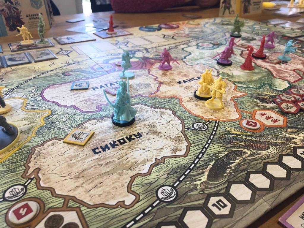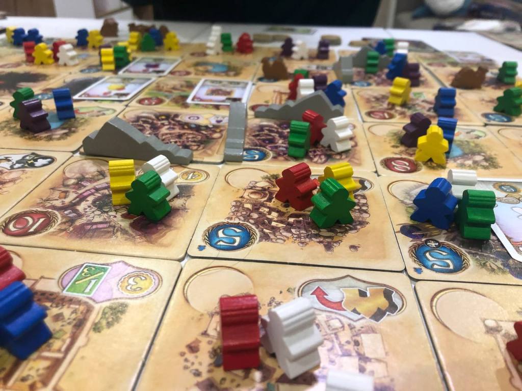 Накануне и в разгар подготовки к ДР клуба стало понятно, что локация будет не та, что я планировал, а будет наша классическая. А от нее ключ у Яна. Ян просто так не приезжает, так что пришлось забайтить его на партию в 5 племен. Играли как обычно со всеми допами на троих. Игра мне очень нравится, и если не даунтаймить, получается прям супер. Круто, что партии получаются прям сильно разными, в этот раз я ухватил пораньше Джина, который позволял за двух белых миплов выставлять своих верблюдов на любой не занятой и не пустой территории и стал захватывать плотно города. Ян ушел в сбор сетов, а Аня ухватила Джина, который увеличивает очки за фиолетовых и всю игру собирала их. В итоге все закончили с почти одинаковым счетом. Думаю, что игра стабильно будет высоко в моем топе, но себе пока брать не планирую. Подождем через пару лет эпичного гранд супер пупер делюкса. Хотя она и сейчас хорошо выглядит, все равно кажется, с учетом трендов, что и ее могут рано или поздно переиздать.
