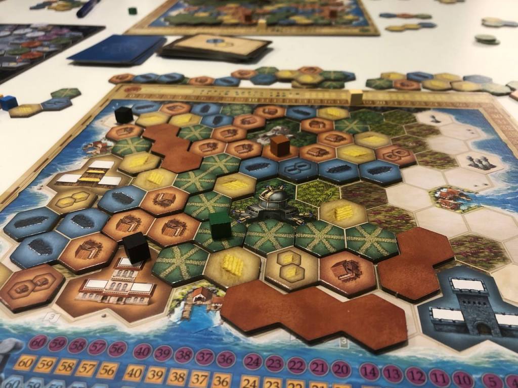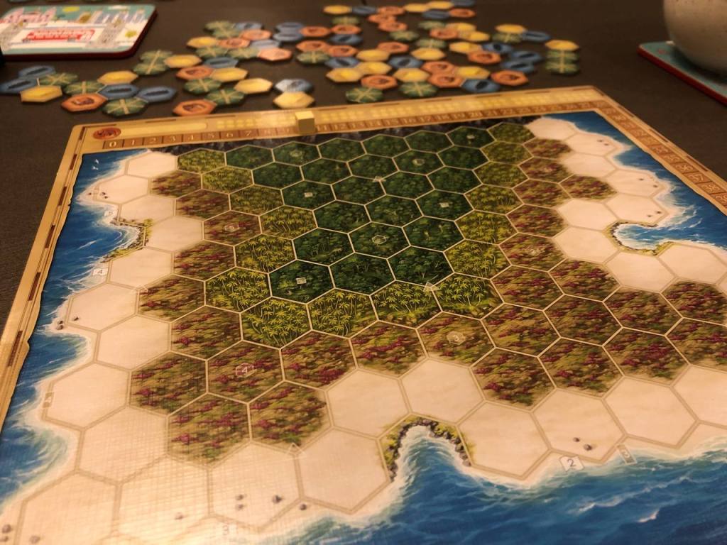 Основная механика — выкладывание файлов на остров, но тут они не тетррисные, а гексовые, из-за чего основная механика ощущается сложнее, а похожие тайлы то и дело между собой кем-нибудь путаются. Фактически ничего больше кроме этой механики в коробке нет, просто у вас будут меняться правила размещения этих тайлов, а также принцип, по которому вы будете делать это эффективнее всего. В моем городе тоже основная механика никуда не девалась, но там как будто бы больше разных интересных моментов на нее сверху прикручивалось.