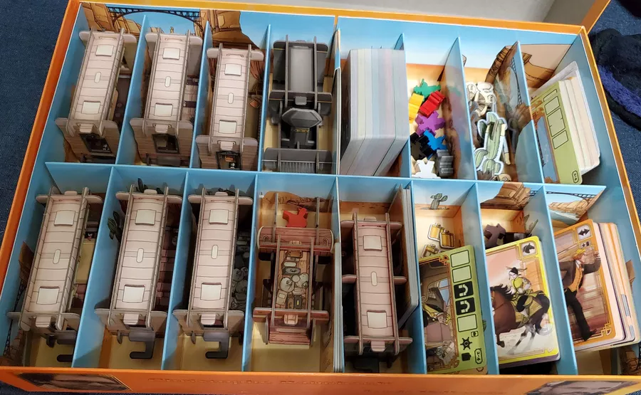 9 место. Кольт Экспресс Big Box. Довольно внезапный пункт в этом списке, но скорее из разряда надо, а не хочу. В коллекции совершенно отсутствуют легковесные игры на много людей за парой исключений. В которые можно было бы провести время не по-умному или не по-нарративному, а по-веселому. И с ненастольщиками чтобы можно было разложить. Из всего, во что играл биг бокс экспресса лучше всего под описание подходит. Но условные Либерталия, Тобаго или Идеальный кадр теоретически могли бы быть на его месте.