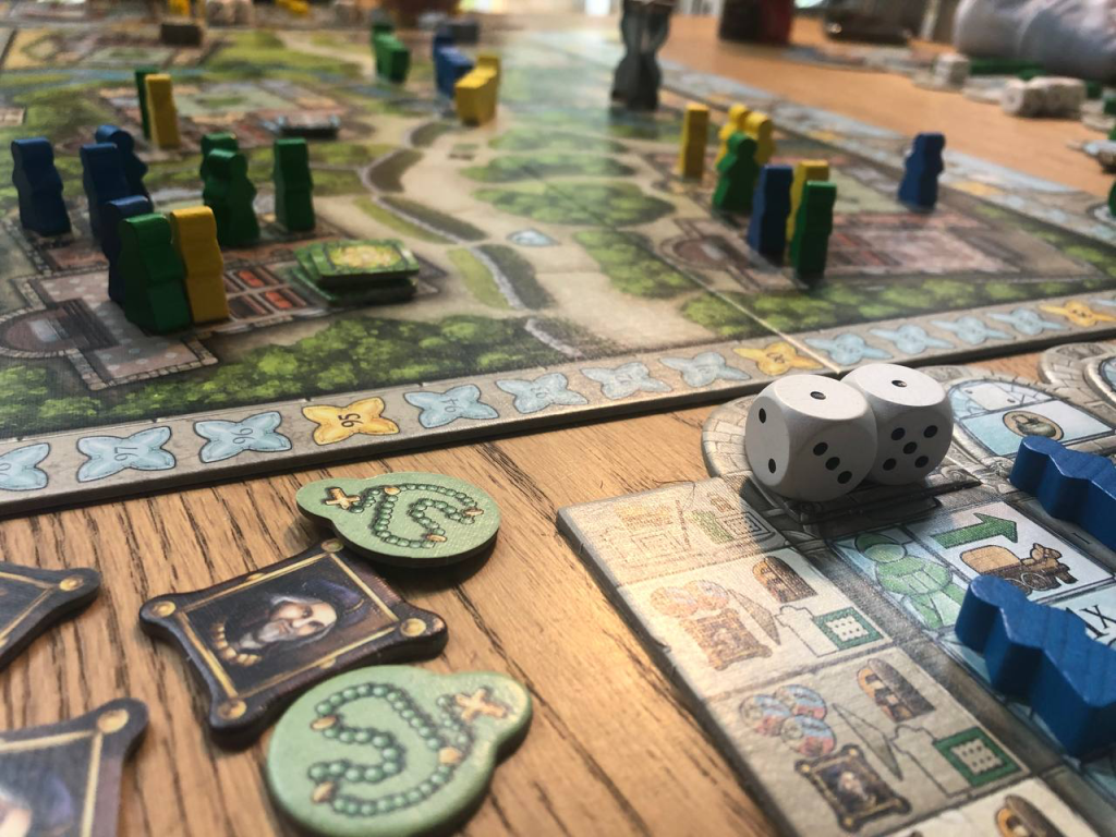 Монастериум. Дико зашел в первый раз, даже выбил из топ-50 кучу Кубиковых евро. Но все из-за эффекта новизны. Не, игра толковая, и реиграбельность за счет использования разного порядка прокачки миплов тут есть, и микро-доп хороший, и механика из Лас Вегаса с кубами хорошо приделана, но вот уж очень она долго играется на 3-4 игрока, и уж очень все-таки она кажется для меня однообразной после дополнительных партий: однообразие в целях, необходимость как можно быстрее догнать осла, чтобы получить доп кубы и так далее. Игра мастхэв попробовать, но пока дело дошло до скидок на нее в магазинах, уже наигрался, в целом. Так бывает, да.
