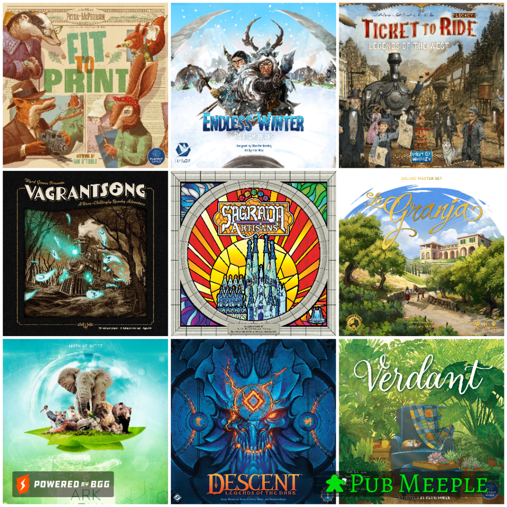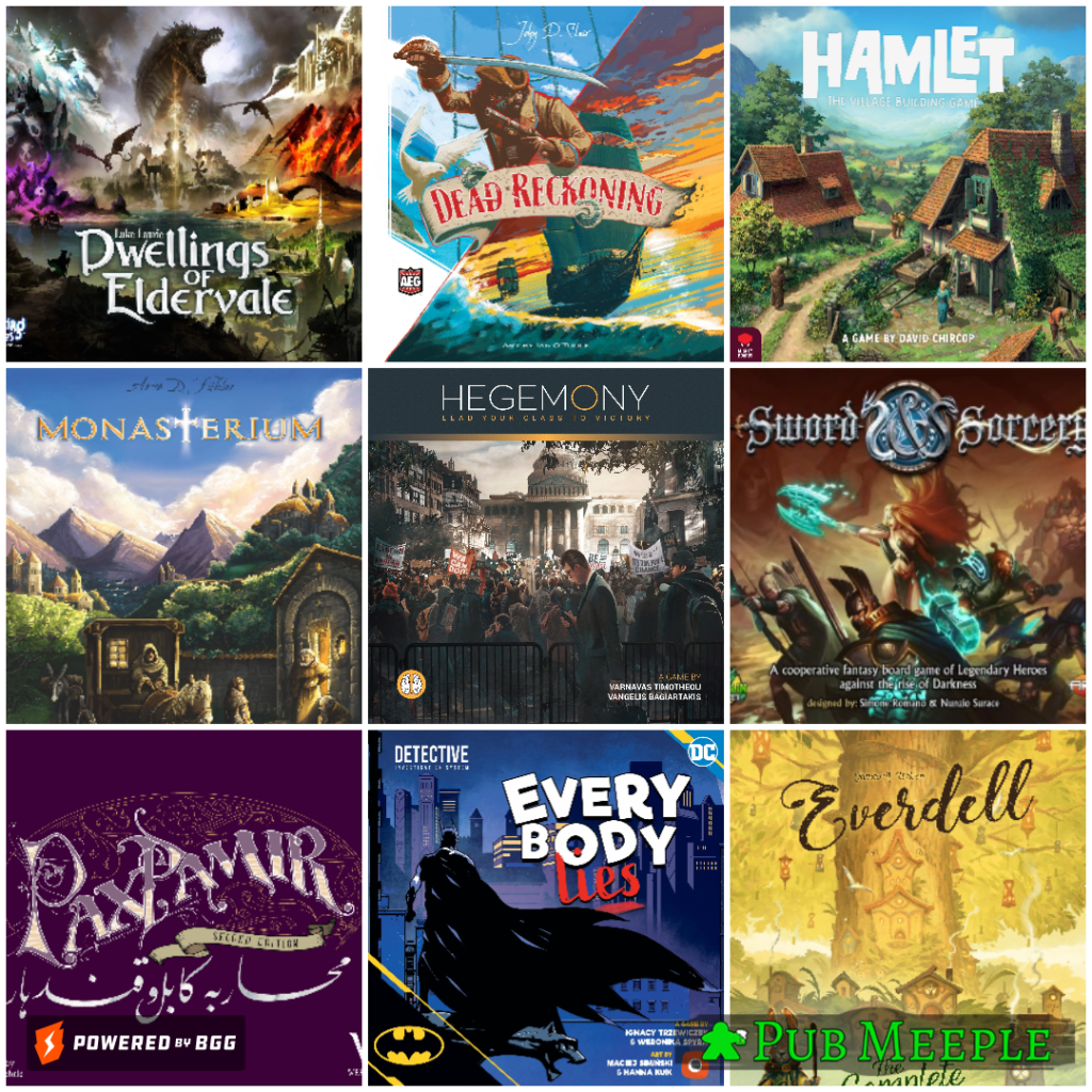 Давайте пройдемся по новому в коллекции. По каждой новой игре расскажу, откуда взялась, как много играли и поделюсь дальнейшей судьбой игры. А чтобы знать, проматывать блок или нет, вот вам картинка с девятью приобретениями 2023. Но в списке их там побольше.