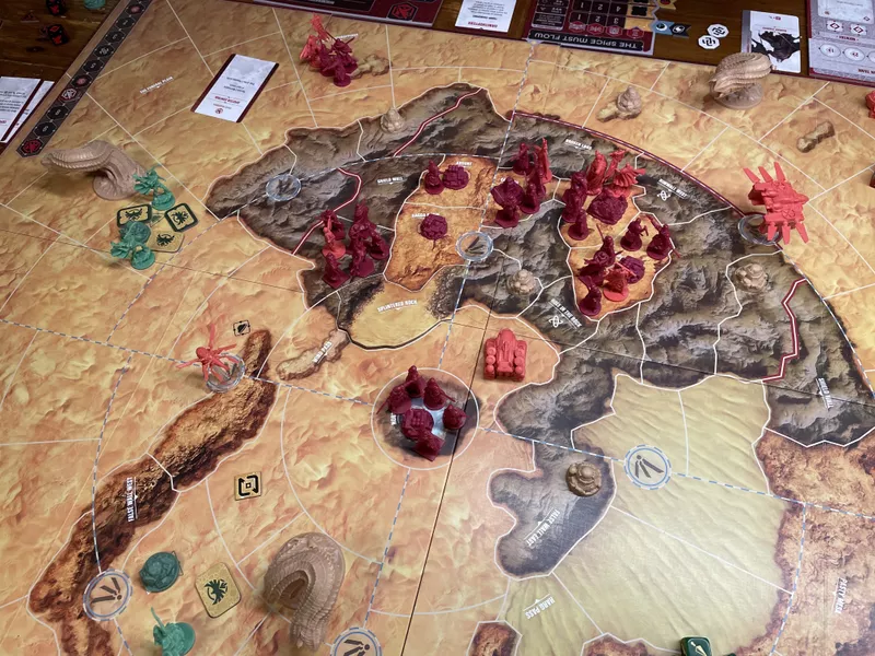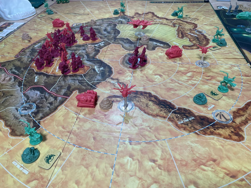 Балансно показалось, что начало партии за Харконеннами, но чем больше игра уходит в лейт, тем сильнее доминируют Атрейдесы. Тем не менее, обе партии, которые успели сыграть у нас были довольно равными. Я не максимально кайфанул, потому что не совсем моя вселенная и лишний раз понял, что хочу войну кольца. Но все равно ожидал от игры гораздо меньшего, как будто бы с финальными правилами она все-таки работает нормально и найдет своих фанатов. Не желаю, что опробовал.