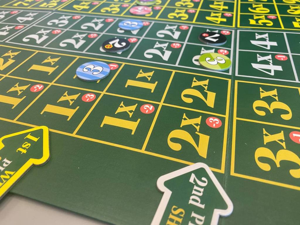 Еще один шанс дали игре, а все просто потому что Саша из блога Pronastolki в гости заезжала и мы играли во всякое, до чего ей хотелось добраться. Скачки или игра телефон что-то говорит, а ты на него орешь и делаешь ставки — штука азартная. Мне не очень заходит, потому что я не настолько эмоциональный, но некоторым ребятам за столом прям было по кайфу. Еще мне лично на четверых вот понравилось больше чем восьмером — меньше хаоса и короче фаза начисления доходов.