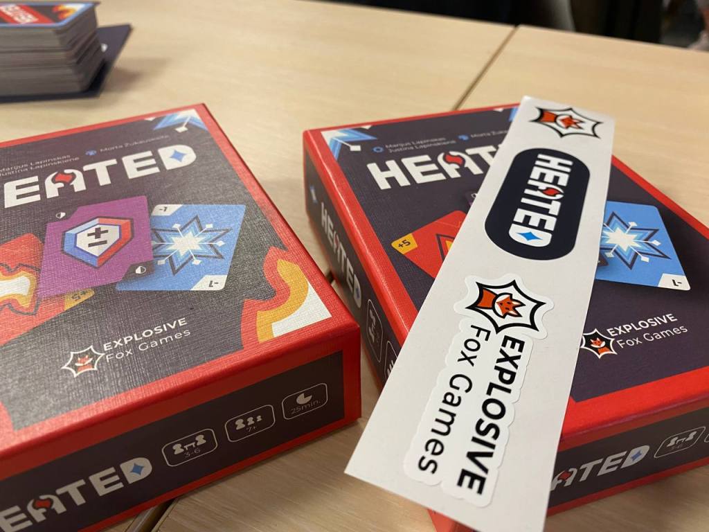 Еще был отдельный стенд от товарища из гильдии, который решил заняться селф-паблишингом и продвигал там свою первую игру Heated. Это филлер, в рамках которого нужно выровнять свою температуру в ноль, играется азартно и забавно, хорошо на разный состав, а семейная пара, которая стоит за проектом очень приятные и харизматичные ребята, так что надеюсь, что у них все получится. По итогам конференции договорился с одним издательством о питчинге моих проектов, а также вот продолжим общение по двум прототипам и с ребятами с проектом Heated.