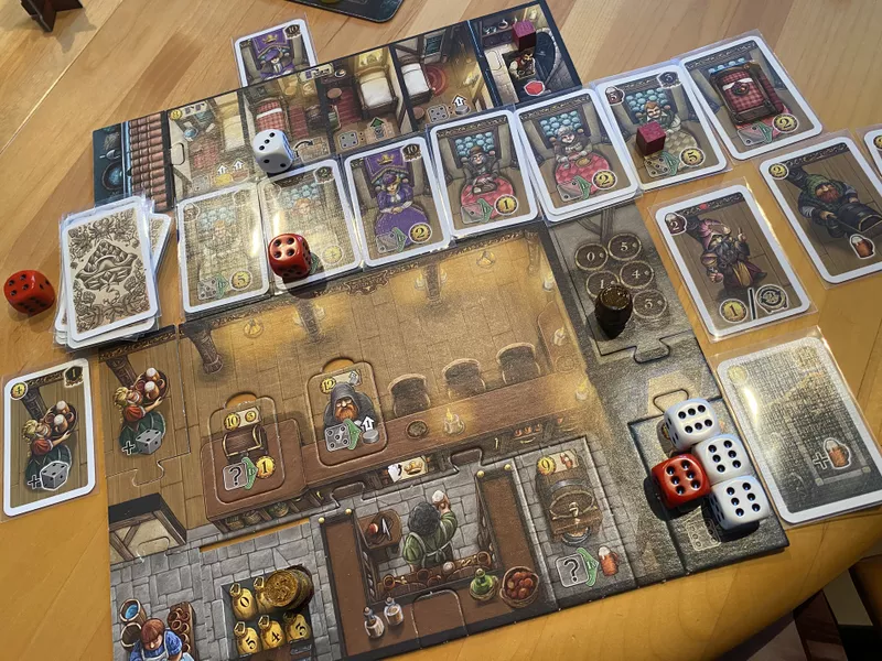 На самом деле игра прекрасна в своей простоте. Выкладываешь двойной тайлик и активируешь эти два действия, если рядом есть такие же в вашем котле, то действие становится более сильным. Выглядит просто, но подумать есть над чем, а с учетом короткой длины партии, вполне можно рассматривать как игру на короткий игровой вечер. После пятерки партий и с учетом негативных отзывов на доп свою коробку продал, но положительных эмоций впитал немало. Разве что на четверых играется как-то затянуто.