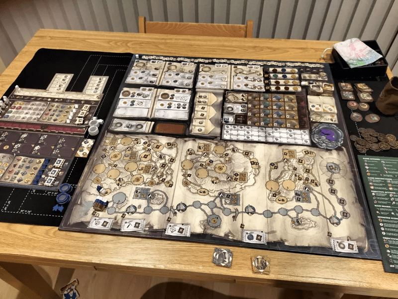 Более сложная, чуть-чуть пересекающаяся одной из механик со скалой ведьм, но головоломка совсем другого рода. Даже после пятерки партий и распечатанной книжкой с лором, я все равно не понял лор игры, но сама игра довольно занятная. Единственное на двоих мне прям мало взаимодействия, на троих лучше, деревья из дополнения тоже нравятся. Но саму игру продаю сейчас, как будто бы уже наигрался, да и оформление мне не прям супер.