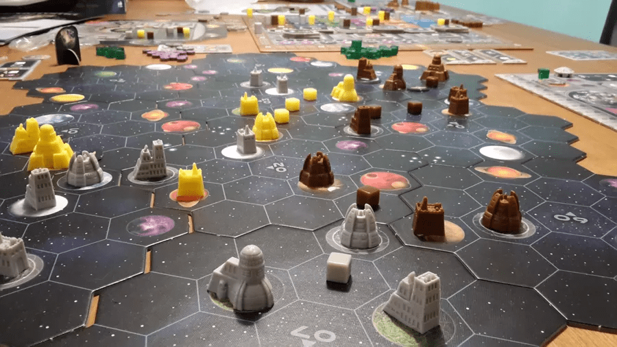 Один из самых высоко забравшихся космосов. Мог бы быть ниже, но объективно игра отличная, просто мне в нее играть тяжело. Она из тех, что далеко вперед можно просчитать многое, и из тех, где опыт многое решает, поэтому я в такое сейчас не очень часто сажусь, с моим желанием играть каждый раз что-нибудь новое тяжело наиграть кучу опыта в одном. С учетом грядущих допов игра точно заслуженно занимает это место, а вот с инновацией и терра мистикой сравнить сложно (в одну не играл, во вторую только онлайн играл), но для тех, кому хочется мощной асимметрии в космосе и возможности загнать себя в экономический тупик — советую. В коллекции нет из-за того, что игра умнее меня.