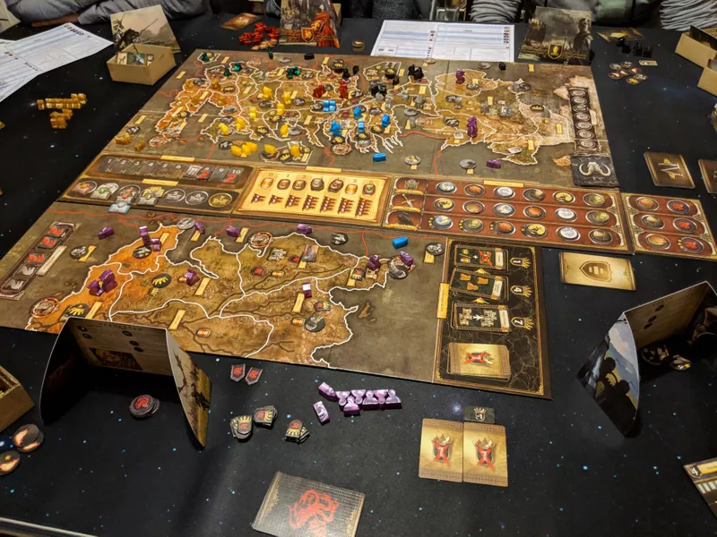 Такие игры на самом деле постоянно есть в игровом вишлисте, но чаще всего такими является либо что-то старое вроде Name of Rose, на что в ТТС пати не соберешь. Либо что-то очень нишевое вроде Burning Banners (на картинке), фентези-варгейма. Тут же можно упомянуть My Father’s Work, воркерплейсмент с противоречивыми отзывами и приложением. Или Return to Dark Tower, которую многие знакомые грозились купить, но никак не купят. Тут же можно упоминать какие-то красивые евро вроде Critter Kitchen или Floe. Ну и Skyrise, до которого за год так и не удалось найти, где добраться. Шанс на то, что куплю из этого всего что-то есть, но думаю одну игру за год максимум.