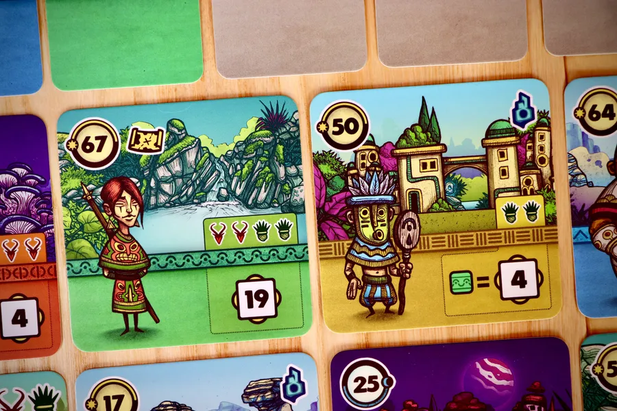 Старушка, которая смогла. Игра совсем не новая, да и механика ронделя, которая мне обычно не очень заходит, но тут как-то паззл сложился и все работает как часы. Необычный подсчет очков, интересные моральные выборы, бежать ли за крутым тайлом сразу или медленно идти шаг за шагом. При этом время раунда зависит от того, как быстро бегут соперники, и тут тоже есть кусок взаимодействия. Классный проект, может быть, даже прикуплю.