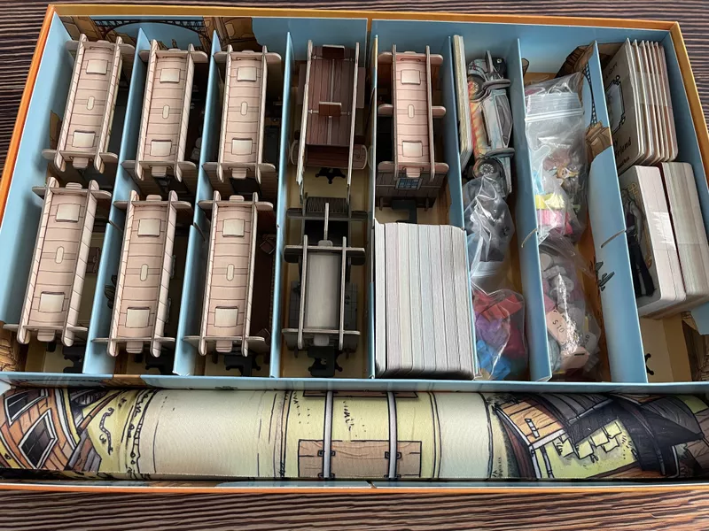 Билет на поезд остался в топе отчасти из-за своей бесхитростной механики, отчасти пригревая местечко для версии Наследие, отчасти потому что все-таки обладает какой-то необычной магией пуш е лака, где ты тянешь карты и радуешься, что достал нужные цвета, и сразу выдызаешь, что можешь собрать нужный маршрут. Классный проект. Всякая другая классика вроде Каркассона не хуже, но больше положительных эмоций на момент сегодня вызывал скорее Поезд.