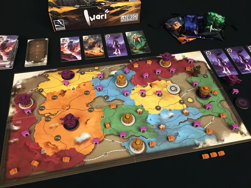 Уникальный концепт контроля территорий, привязанный к цветам карт и с очень непривычным подсчетом очков, еще и развивающимся благодаря разным модулям и картам. Игру показал Тарас и она медленно, но верно двигалась у меня к топу, я ее полюбил сразу, просто она не казалась достойной топа, но на конец 2024 я считаю, что достойна и присваиваю ей почетное сорок второе местечко.