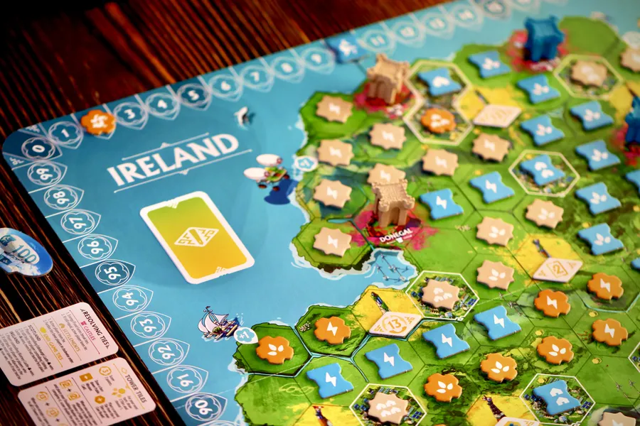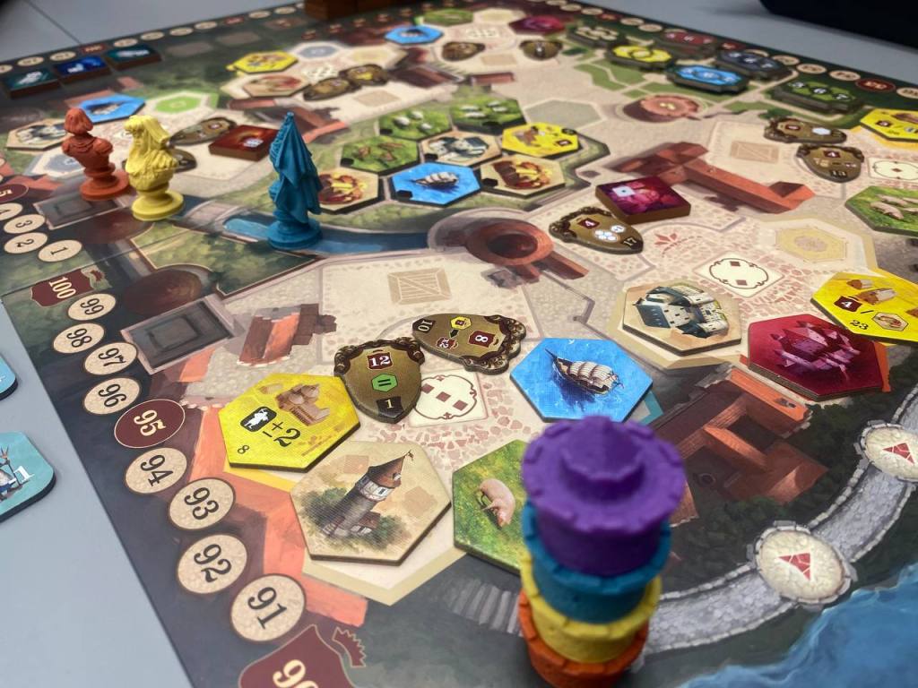 Игра очень простая, тянем компонент из мешка и размещаем на поле. За это так или иначе скорим очки. Две стороны поля разные, но каждая со своим минусом. На одной — размещай что хочешь куда хочешь, что почти не дает возможности подрезать других игроков как в каких-нибудь Through the Dessert от того же автора. На второй — считай, что у тебя всегда 1-2 варианта как что разместить на поле максимум, что очень сильно уменьшает количество принимаемых решений на квадратный метр картона. В итоге красивая игра, но как будто в ней чего-то не хватает, слишком простая на мой вкус. Типа а зачем играть в эту, если какой-нибудь Каркассон отлично справляется с подобной простой семейной нишей.