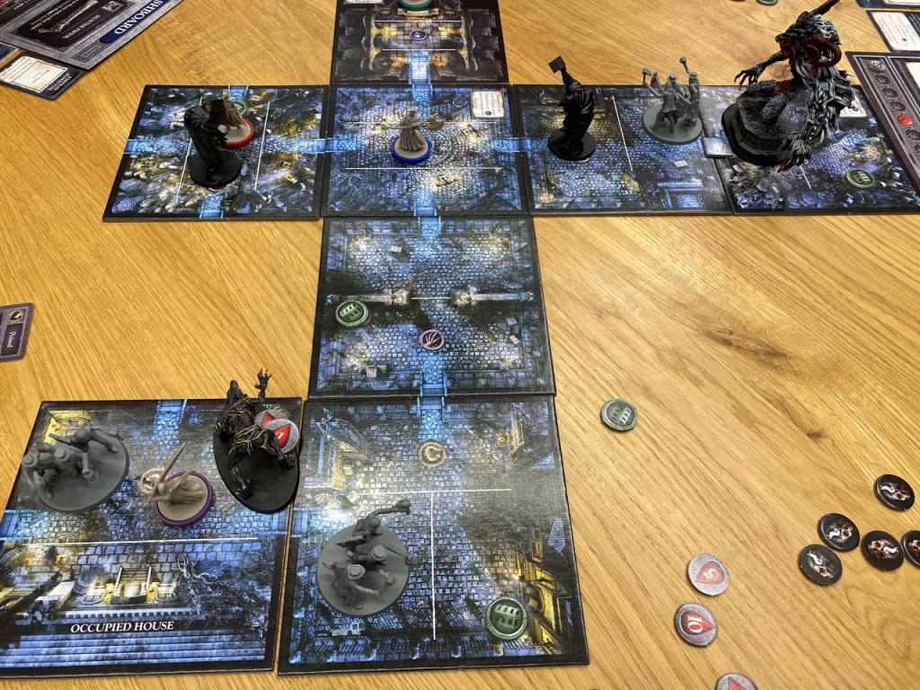 Мне было интересно откатать все три акта в каком-нибудь сценарии. И вот даже удалось это сделать в физическую коробку. С точки зрения подачи нарратива игра прекрасна — куча событий, которые аукаются и влияют на акты, очень круто и бережно перенесенные из видеоигры сюжеты, локации и предметы. Играть было интересно, но пару раз на нюансов правил мы все-таки в итоге подвисали, кое-где были непонятные ситуации, и приходилось гуглить, как реально правильно отыграть тот или иной момент. Мне чуть-чуть не хватило прогресса героев — даже не смотря на прокачку, к третьему акту не становилось сражаться ощутимо легче, игра закончилась на тоненького, нам удалось в итоге убить главного босса, но это было супер потно.