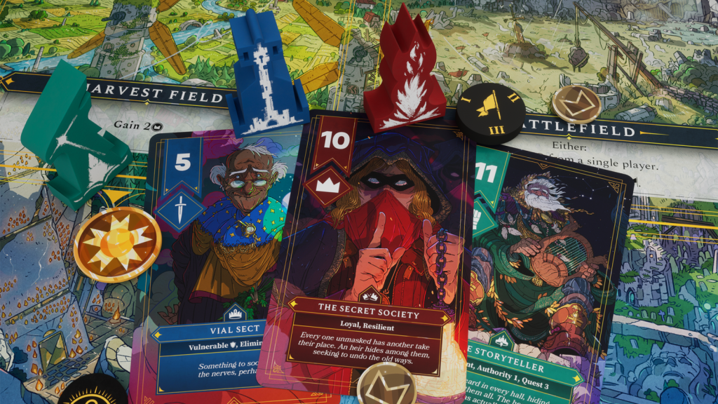 На самом деле Arcs можно еще сравнить вот с этой игрой, по крайней мере мне чем-то показалось похоже. Тоже условная механика взяток, где старшая карта определяет кто побеждает на разных полях битвы, при этом у карт еще есть всякие эфекты и приходится немного заниматься майнд геймс, чтобы определиться, куда что размещать. Колоды у всех немного отличаются, арт очень красивый, но проект получился на любителя. Мне вот опять понравилось, а коллегам по партии не очень. Себе решил после партии все-таки не покупать, так как раз отзывы противоречивые, то будет скорее всего пылиться на полке, а пылящихся игр уже и так хватает