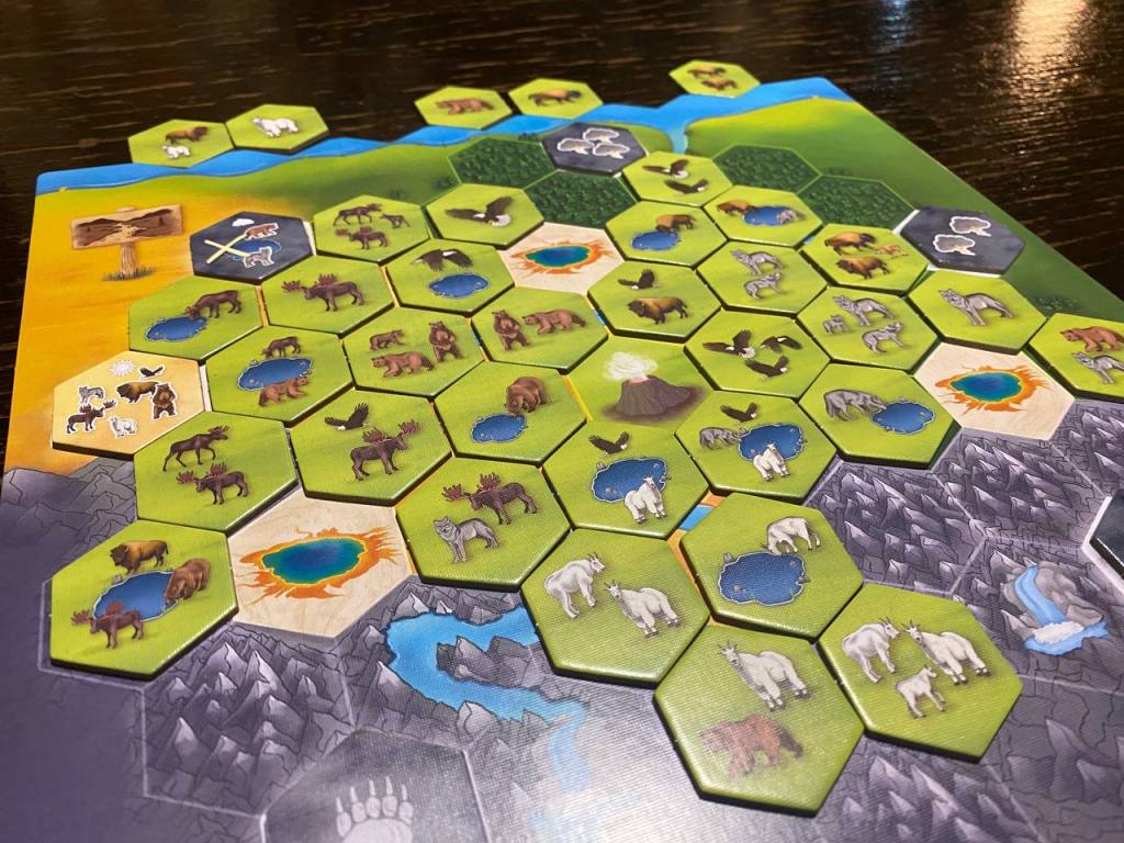 Господин Кислинг не только Азулом единым славится, и до этого его проекта я тоже пытался добратся очень давно. Коробка была в местном настольном клубе, но все как-то не мог найти желающих собраться. И вот как-то случайно все-таки мы собрались и добрались. Перед нами по факту этакое лоскутное королевство, котором на каждом тайлике может быть сразу несколько типов местности (животных в данном случае). И все это надо грамотно на планшете закомбить, чтобы получить как можно больше очков. Реально классный простой абстракт минут на 30, с неплохой механикой выбора, куда какое животное отправляется. Как дуэлька будет играться шикарно, хотя оформление на любителя.
