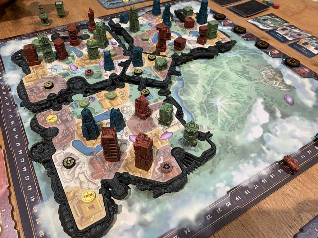 В польской поездке много разных амери игр удалось опробовать, которые давно хотел. Вот жужжащая башня — одна из них. Мы играли с дополнением Альянсы и это было очень правильным решением: допчик добавил еще больше интересного контента. Игра с приложением и жужжащей башней — это конечно развлечение не для всех, но вау-экспириенс даже для искушенных настольщиков обеспечен. Черепа вылетают, башня мигает, звуки издает, рандомные ивенты генерит, спутников и сюжет учитывает.