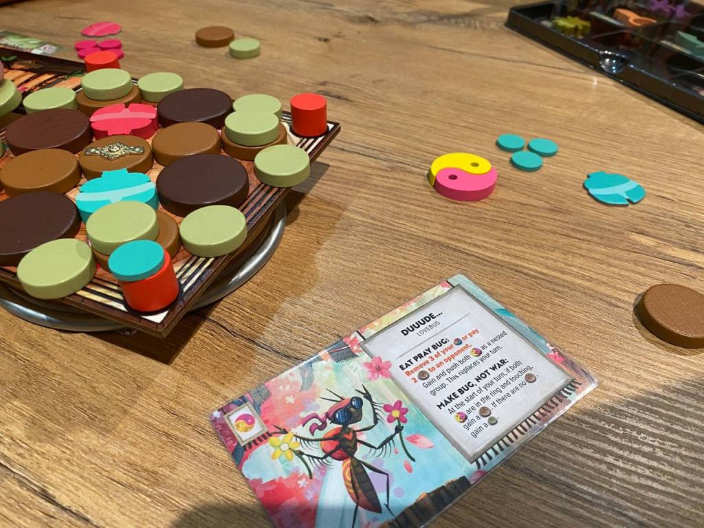 еще сыграл в довольно простую, странную игру, которая началась с фразы «Леша, тебе не понравится, но давай сыграем». А мне вот понравилось. Это такой необычный формат декстерити игр, в которой есть поле из всяких деревяшек и туда нужно по очереди не что-то пихать на это поле, выталкивая другие деревяшки. Основная задача — это вытолкнуть сумоиста соперника, но могут быть и альтернативные способы победы. У двух игроков свои персонажи с абилками и одним или нескольким уникальными компонентами.
