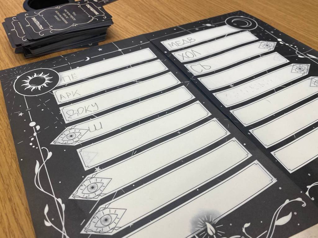 Какие-то очень хэлоувинские получаются игры, но вот тематически уже как есть. На замену проданным Landmarks, которые оказались хороши в режиме с двумя капитанами, но как-то поднадоели мне в кооперативном, купил себе чернила. И это возможно лучший филлер, который я попробовал в 2025. Кайфовая идея с общим загаданным словом и с уточняющими вопросами, ответы на которые пишутся по буквам. Не знаю, что привносит в игру допчик, но и в базовом виде играется отлично. Я сыграл пару раз и еще раз приносил на игротеку, где ребята в итоге часа 4 играли только в нее, так и не разложив ничего другого.