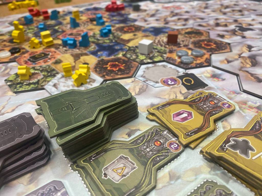 Игра обманичиво предоставляет возможность делать кучу всего, но по факту уже после первых партий мы в тусовке решили, что одна из игровых механик приносит сильно больше победных очков и является ключевой (время собирать камни, как говорится), что можно сравнить с храмом в Арнаке. Решили так не мы одни, на BGG тоже хватает тредов на эту тему. Можно пробовать побеждать и через что-то другое, но камни дают сильно больше бонусов как в процессе игры, так и в конце.
