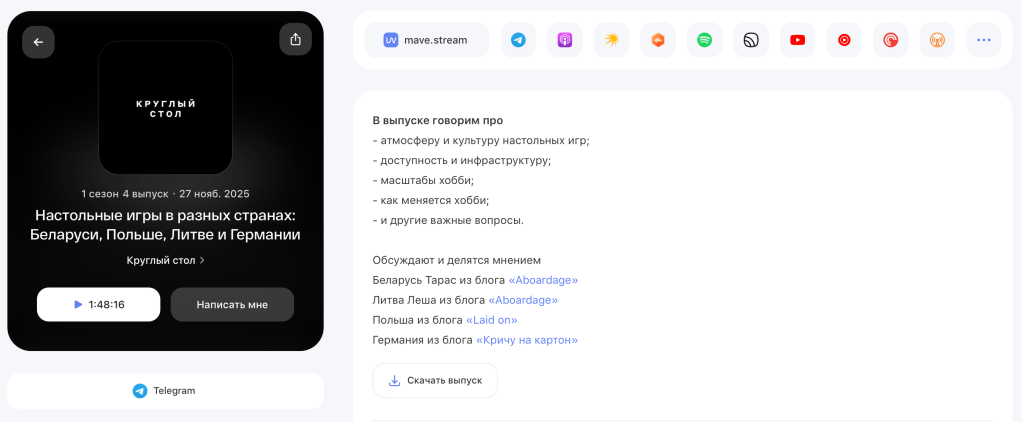 Еще в этом году мы записали пару выпусков подкаста. Тарас этим занимается, а я, Юра и Том просто приходим и что-то говорим. Рассказали про игры, которые нас удивляли, про лучший формат настольных игр и сравнили настольное хобби в Польше, Литве, Германии и Беларуси. В начале года еще что-то про итоги года будем записывать.