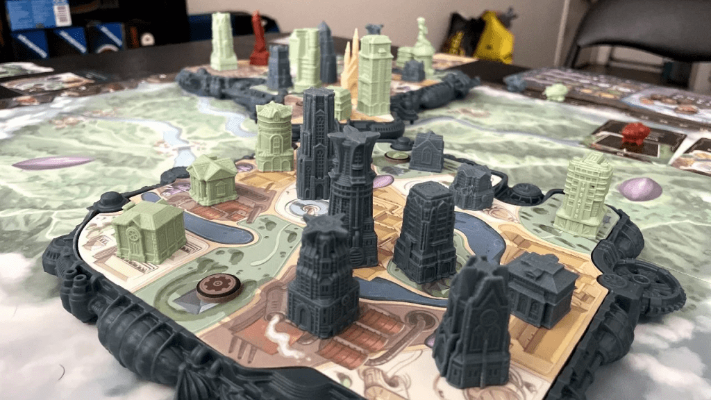 Еще один хороший проект, но не на топ-10. Механически это Арк Нова лайт + немного Эверделла. Все вроде бы хорошо работает и допчики кайфовые, но концовка чуть затянутая и разнообразия в целях немного не хватает. Проект точно стоит отметки и добавления в этот список и при прочих равных кого-то мог бы изгнать вниз, но чуть-чуь не хватило.