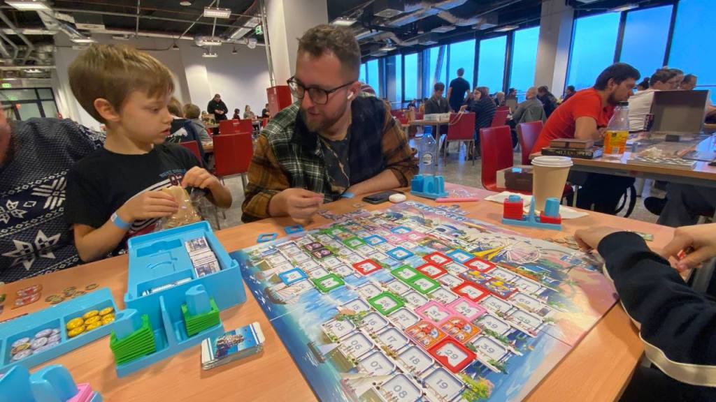 Добрался до парочки настольных и околонастольных ивентов вроде Lithuanicon в Вильнюсе или Wawagra в Варшаве. Вавагра само собой не Эссен, но вайбы похожие, много людей (говорят, в первый день было вообще не протолкнуться, на фото пруф), огромная игротека, много польских издателей, куча новинок. На такие ивенты точно лучше не ходить в одиночку, чтобы вместе сразу во что-то играть, думаю. Прикупил себе майку, из достижений пока все.