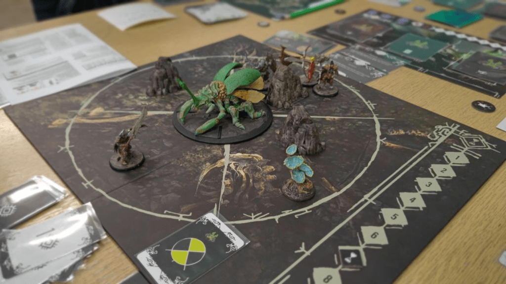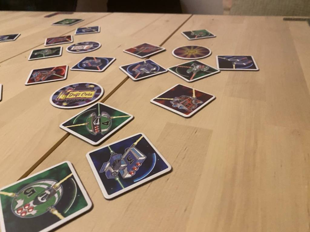 После основной программы в Латвии пошли пару мелких игр. В этой мелкой игре мы в течение супер маленьких раундов по 10 секунд на стол выставляем свои корабли космические, а потом все это фотографируем приложением и разыгрывается реальный космический бой. За свою цену игра дарит очень веселый и азартный геймплей. Я был уверен, что после поездки в Латвию я себе закину что-нибудь в корзину, ставил на Друидов, но в покупку улетела внезапно вот эта малютка. Ладно, друиды тоже очень хороши, просто место в шкафу под большие коробки закончилось