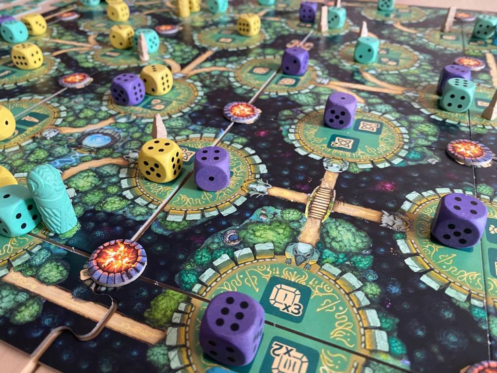 Кроме поездки в Латвию, еще поиграл парочку новинок онлайн и в Вильнюсе. Dewan поиграл на BGA, привлек визуал и описанием, но в коробке оказался очень простой проект. Собираешь карты с возможностью двигаться по местности, резмещаешь свои домики, стремясь выполнить набранные в процессе партии цели. Чуть-чуть соперничаешь за территории с соперниками. Игра симпатичная, но не выделяется чем-то, чтобы о ней долго говорить.