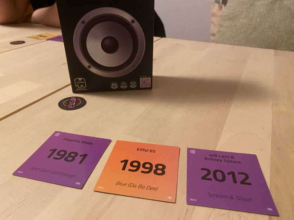 Шлифанули и завершили Рижский настольный вечер угадыванием песен и лет, когда они вышли. Очень клевый формат угадай мелодии, который зайдет почти в любой компании. На коробке написано до 6 человек, но я думаю, что и большим составом можно пробовать играть и будет все еще довольно весело. Возможно тоже возьму себе такое дело, если будут намечаться какие-то вечериночные мероприятия.